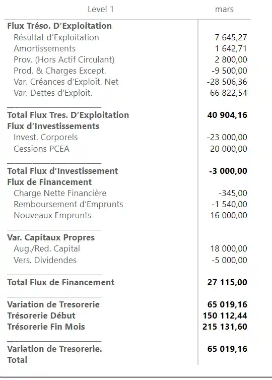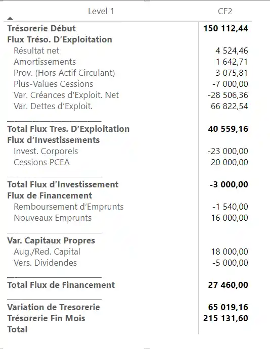 - Vérification et réconciliation : Vérifiez la cohérence des flux de trésorerie avec les informations du compte de résultat et du bilan.
